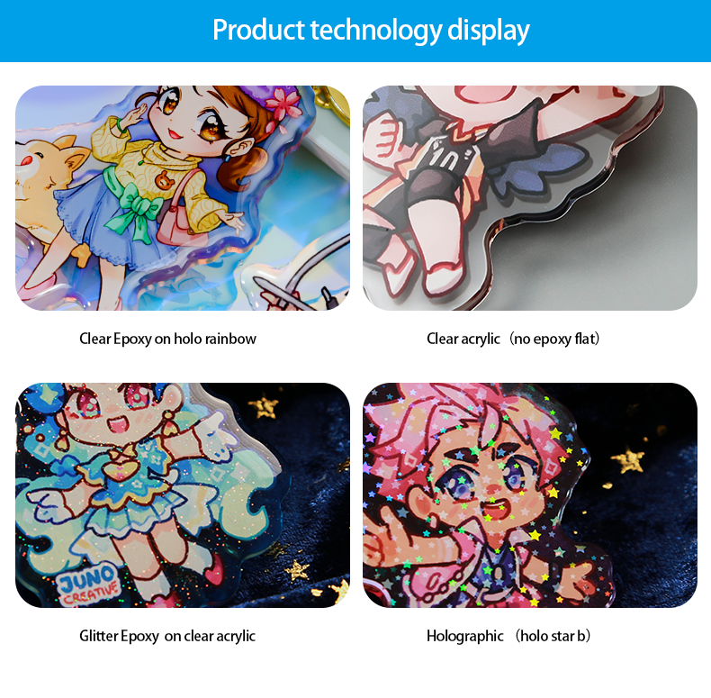 There is a protective film on the surface of acrylic keychains(except the epoxy ones). About the size:All the size would have the clear margin included and size will be the longest side (width or height) |