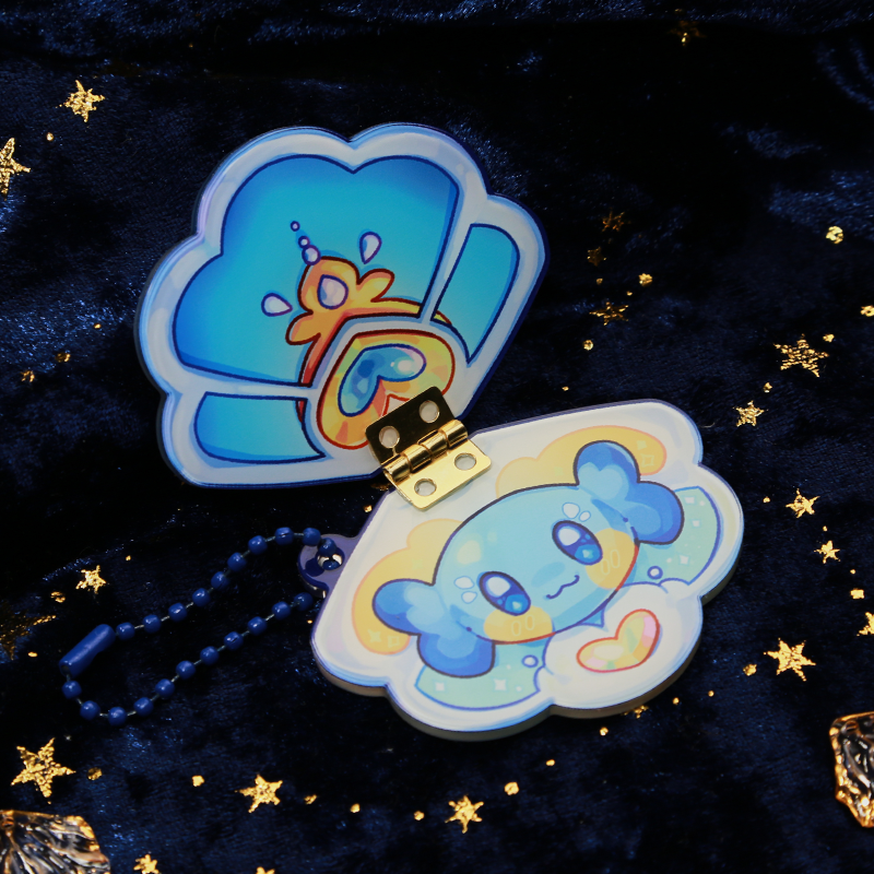 There is a protective film on the surface of acrylic keychains(except the epoxy ones). About the size:All the size would have the clear margin included and size will be the longest side (width or height)  |